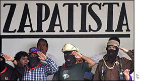 | | A 1994 memo from the Chase Manhattan Bank urging the Mexican army to, ‘eliminate the Zapatistas’ elucidates how global capital evaluates those who seek alternatives. | After a few years of relative quiet, relegated to their misty mountain strongholds in southern Mexico, Zapatista rebels recently tried to re-assert their presence on the international stage, continung a unique military strategy based more on words than weapons.