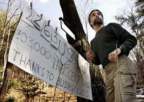 | | Dan DeWalt adjusts a sign protesting the war in Iraq outside his home in Newfane, Vermont March 14, 2006. DeWalt introduced an article calling for the impeachment of U.S. President George W. Bush at Newfane's annual Town Meeting March 7, 2006 and it passed with 121 votes in favor to 29 votes against. (Reuters/Brian Snyder) | From the Wall Street Journal to MSNBC, talk of impeachment is no longer on the fringe.