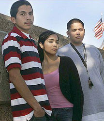 | | Jose Covarrubias, 16, Melissa Lopez, 16, and her brother Gustavo Lopez, 18, participated in the recent walkout at Garden Grove High School. The enormously popular web site MySpace was instrumental in spreading the word. (Lori Shepler /LATimes) | School officials concede they cannot stop the momentum behind student walkouts to protest legislation on illegal immigration.