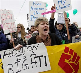 | | Abortion rights activists protest against a march by anti-abortion activists in San Francisco, California January 21, 2006. Abortion rights supporters planned to launch an attack on Friday on a new South Dakota abortion law designed as a direct challenge to the Supreme Court decision that legalized abortion 33 years ago. (Kimberly White/Reuters) | Sioux Falls, SD - Plenty of places would wish to find themselves at the center of a national philosophical debate, but this is South Dakota.