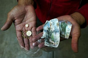 | | Israel Morales, 30, a migrant from Mexico City, shows some lentils, corn, a coin and two images of the saint San Judas Tadeo, while he stays at the Casa del Migrante, a shelter for migrants, on Friday, May 5, 2006 in Tijuana, Mexico. Morales' mother had given him the items to bring him good luck and to protect him on his trip to cross undocumented to the United States. (AP/David Maung) | Before Israel Morales boarded a plane from Mexico City to Tijuana, his mother slipped a tiny plastic bag containing a coin, lentils and an image of Christ into his pocket, so he wouldn't be without money, food or faith.