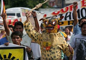 | | Supporters of Andres Manuel Lopez Obrador, presidential candidate of the Party of the Democratic Revolution (PRD), march to demand for a full recount of the July 2 general election in Temixco, in the southern Mexican state of Morelos, July 13, 2006. Angry peasants trudged through the mountains of southern Mexico on Thursday toward the capital in a nationwide protest to support Lopez Obrador, who says he was cheated at the July 2 presidential election. (Reuters/Tomas Bravo) | The disputed result from the presidential election has left many Mexicans disappointed with their country's fragile democracy.