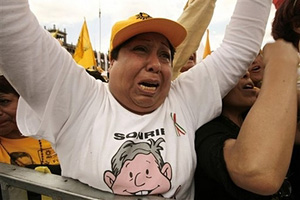 | | A supporter of Mexican presidential candidate Andres Manuel Lopez Obrador weeps at the end of a massive march in demand of a ballot by ballot recount of the last July 2 elections in Mexico City, Mexico on Sunday July 16, 2006. (AP/Dario Lopez-Mills) | Mexico's still-unresolved presidential election threatens the sharply divided country with instability, according to a Latin American expert from American University in Washington, D.C.