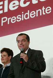 | | Luis Carlos Ugalde, president of the Federal Electoral Institute (IFE) speaks to the media on Wednesday, July 5 2006, in Mexico City, during the final count of the Mexican presidential election. (AP/Guillermo Arias) | Electoral commission's mistakes undermine credibility of the election.