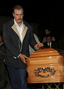 | | Mexican President Vicente Fox, touches the coffin of his mother Mercedes Quezada de Fox in the town of San Cristobal, Mexico on Thursday June 29, 2006. The mother of President Vicente Fox who held her family together from its ranch in central Mexico, died late Thursday, three days before elections to replace her son, the president's office said. She was 86. (AP/Mario Armas) | Six years after his astonishing victory ended 71 years of one-party rule, many people see Vicente Fox as the president who squandered a golden opportunity to turn Mexico around.