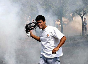 | | Opposition Mayor Leopoldo Lopez, has been accused of providing demonstrators with anti-gas masks like the one he used when trying to break the security perimeter that protected foreign delegations attending the G-15 Summit in 2004. (Venpres) | Caracas, Venezuela — Wherever politician Leopoldo Lopez goes these days, a crime wave seems to follow.