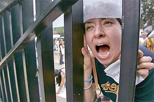 | | Lopez Obrador supporters gather outside the offices of the Federal Election Institute in Mexico City, raising chants of “election fraud.” (Javier Manzano/LAT) | The internal conflicts of democracy were highlighted in Mexico this week as a free election - only the second in Mexican history - produced a historic result but left the country bitterly divided on political lines.