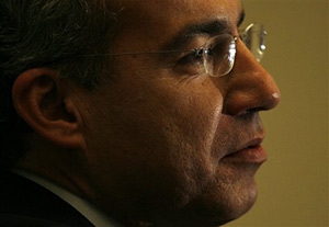 | | Felipe Calderon, the possible winner of the July 2 Mexican presidential elections, listens to a question during a news conference with foreign correspondents in Mexico City, Mexico on Friday July 7, 2006. (AP/Dario Lopez-Mills) | Felipe Calderon won Mexico's presidential election not because of who he is, but because of who he isn't.