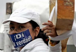 | | A supporter of Mexican presidential candidate Andres Manuel Lopez Obrador of the Democratic Revolutionary Party (PRD) protests during a demonstration in front of Mexican Televisa network in Mexico City July 21, 2006. The supporters were protesting against Calderon's July 2 election victory, which they say was riddled with fraud. The words on the paper placed over the supporter's mouth reads, 'Tell the truth.' (Reuters/Henry Romero) | Mexico's Roman Catholic Church pleaded for calm this week as bickering between the left and right neared the boiling point in a country plunged into political limbo by a contested presidential election.
