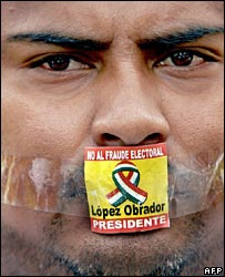 Many carried signs declaring President Vicente Fox "a traitor to democracy". They believe he orchestrated the election to favour his party's conservative candidate, Felipe Calderon.