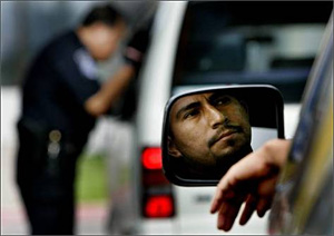 Weaving in and out of the smog jam is a Customs officer, holding a shepherd mix by the leash to sniff out contraband. As cars creep toward the inspection booths, automated scanners register license plates in a computer. Then other Customs officers ask for identification, pop trunks, inspect spare-tire compartments, peer down air vents. If anything seems out of place, vehicles are sent to secondary inspection for a more thorough examination.