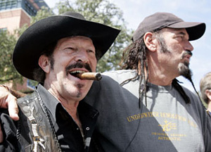 | | Texas gubernatorial candidate Kinky Friedman, left, makes a campaign stop with former Minnesota Gov. Jesse Ventura this week. (AP/Eric Gay) | Houston - Kinky Friedman, the musician, mystery writer and self-styled Jewish cowboy running for governor of Texas, was stumping for votes in a smoky beer bar called the Flying Saucer and spraying one-liners like a Gatling gun.