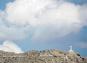 | | Hallowed, dangerous ground: The statue of Jesus on the cross atop Mount Cristo Rey will not be keeping company with National Guard troops after the mountain's part-owners declined the Border Patrol's offer of help. (Kelly Presnell/Arizona Daily Star) | A border community outside El Paso recently gave a firm "no" to a plan to add the security of the National Guard, deciding a statue of Jesus on the cross is protection enough.