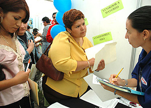 | | Dubious Criteria: Lawyer Patricia Tellez, center, at a recent job fair in Tlajomulco, complains that Mexican employers want “a pretty face or a pretty body.” (Fareed Sanchez/LATimes) | When Michigan-based automotive supplier Lear Corp. needed a secretary for its office in the central Mexican state of Guanajuato, it placed a classified ad seeking a "female ... aged 20 to 28 ... preferably single ... with excellent presentation."