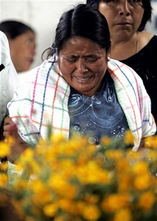 | | Angelina Martinez wife of teacher Panfilo Hernandez cries during during a homage in Oaxaca City in Mexico, Friday Oct. 20, 2006. Hernandez was shot to death late Wednesday in Oaxaca, Mexico. Senate vote eliminated the last legal recourse for their demand that Oaxaca Governor Ulises Ruiz be removed. 'The return to classes is a fact,' union leader Enrique Rueda told reporters, 'the only thing left to define is the day.' He said that could happen as soon as Monday. (AP/Eduardo Verdugo) | Striking teachers in the southern state of Oaxaca on said they plan to return to their classrooms by month´s end and sought to distance themselves from vigilantism on the part of some of their allies in the effort to force out the state´s governor.