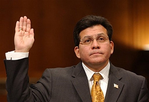 | | Attorney General Alberto Gonzales is sworn in on Capitol Hill in Washington, Thursday, Jan. 18, 2007 prior to testifying before the Senate Judiciary Committee. (AP/Dennis Cook) | In one of the most chilling public statements ever made by a U.S. Attorney General, Alberto Gonzales questioned whether the U.S. Constitution grants habeas corpus rights of a fair trial to every American.