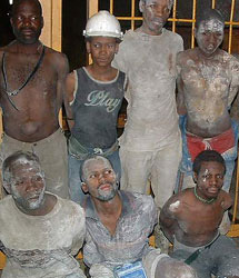 | | Police in Welkom, South Africa, arrested these gold pirates in October. Illegal miners can make 10 times the earnings of an average South African. (South African Police Service) | Welkom, South Africa - Thousands of disgruntled mineworkers laid down their tools one Wednesday night in March 2005, and in the eight days they were on strike, one of the darkest secrets of South Africa's gold mining industry spilled into the light.