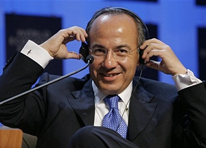 | | Felipe Calderon-Hinojosa, President of Mexico, puts his headphones on during a plenary session at the Annual Meeting of the World Economic Forum, WEF, in Davos, Switzerland, Friday, Jan. 26, 2007. Top business leaders, heads of state from around the world and NGOs gather here until Sunday. (AP/Peter Klaunzer) | Mexican President Felipe Calderon made news a couple of weeks ago when he said that Mexico belongs first and foremost to Latin America.