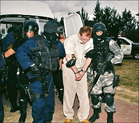 | | Head of the Sinaloa Cartel (northwest) H้ctor Palma Salazar is arrested by members of the Federal Agency of Investigations (AFI) of Mexico, 20 January. Mexico and the United States have entered a new era of cooperation in drug enforcement as the Mexican government handed over to Washington 11 leading suspected drug traffickers, including Osiel Cardenas, head of the feared Gulf Cartel. (AFP/PGR) | Mexico and the United States have entered a new era of cooperation in drug enforcement as the Mexican government handed over to Washington 11 leading suspected drug traffickers, including Osiel Cardenas, head of the feared Gulf Cartel.