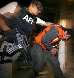 | | A member of a special group of Mexico's Federal Investigative Agency (AFI) arrests a man on suspicion of possessing drugs during an anti-narcotics operation in the Morelos district in Mexico City January 26, 2007. (Reuters/Daniel Aguilar) | Amnesty International raised concerns on Wednesday over President Felipe Calderon's use of troops to control Mexico's spiraling drug violence, fearing rights abuses and echoing worries of the United Nations.