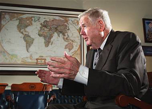 | | Part kindly Irish Catholic grandfather and part political pit bull with two Purple Hearts in his pocket, Rep. John Murtha seems the Democrats’ best chance of using the budget to curtail the war without appearing to be leaving troops in the lurch. (Dennis Cook/AP) | After enjoying great deference in the conduct of national security for his first six years in office, President Bush now faces an assertive opposition Congress that has left him on the defensive. The nonbinding resolution passed on a largely party-line vote seems certain to be the first of a series of actions that will challenge Bush for the remainder of his presidency.