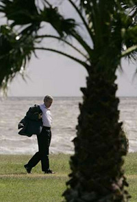 | | U.S. President George W. Bush dons his coat as he walks along the coast from Marine One after returning to Montevideo from the presidential retreat in Anchorena Park, Uruguay, March 10, 2007. Bush met with Uruguayan President Tabare Vazquez at Achorena Park and conducted a joint news conference there. (Reuters/Jason Reed) | The opportunity to jump-start U.S.-Mexico relations couldn't come soon enough for President Bush and Mexican President Felipe Calderon when the two meet for their first summit Tuesday as part of Bush's swing through Latin America.