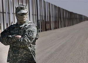 | | Tennessee National Guard Sgt 1st Class Andy Kelemer stands near the primary border fence area in Yuma, Ariz. Tennessee soldiers are currently deployed in Arizona as a part of Operation Jumpstart, working in support of Border Patrol efforts in Texas, Arizona, New Mexico and California. (AP/John Partipilo) | Violence along the U.S.-Mexico border is undergoing what U.S. law-enforcement authorities call "an unprecedented surge," some of it fueled by weapons and ammunition purchased or stolen in the United States.