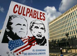 | | A sign showing images of U.S. President George W. Bush (L) and Luis Posada Carriles and the headline reading "Guilty" is displayed in front the U.S. diplomatic mission in Havana April 20, 2007. Cuba and Venezuela denounced the release of anti-Castro Cuban exile Luis Posada Carriles, wanted in Cuba and Venezuela for the bombing of the airliner. (Reuters/Claudia Daut) | The release of international terrorist Luis Posada Carriles shows the US government's hypocrisy and falseness of its so-called commitment to the struggle against terrorism, the Mexican press published on Friday.
