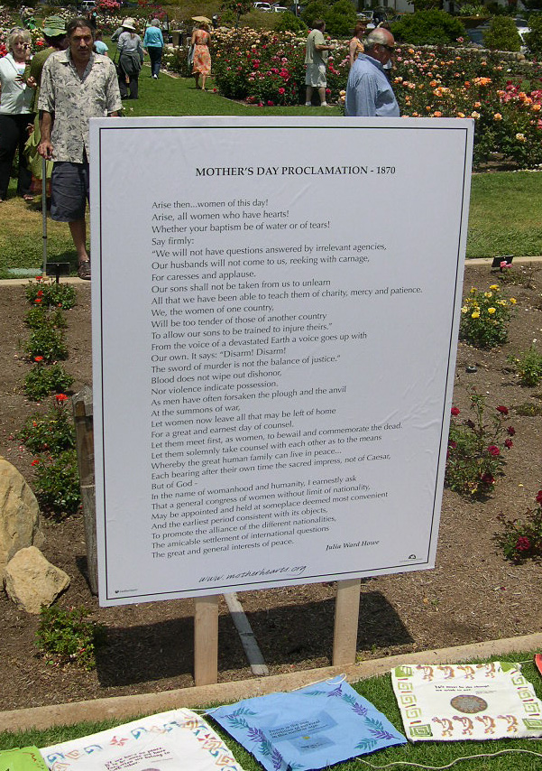 Julia Ward Howe issued the original Mother's Day Proclamation in 1870: