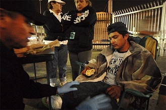 | | Beto Villasenor, a migrant from Mexico's Michoacan state, receives medical attention from Rafael Hernandez, of the humanitarian migrant assistance group Angeles del Desierto, or Desert Angels, in Tijuana, Mexico, Saturday, June 9, 2007, after Villasenor sprained his ankle while being chased by the US Border Patrol in an attempt to cross into the US illegally. (AP/David Maung) | Tijuana, Mexico - Mexican border cities are struggling with an influx of migrants deported by the U.S. government, which has been kicking out illegal migrants at record levels, migrant relief groups say.
