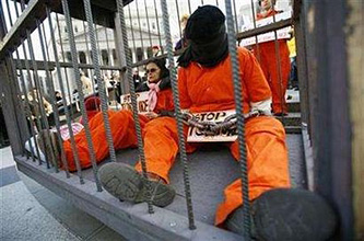 | | A demonstrator holds a sign during the International Day to Shut Down Guantanamo protest, in New York January 11, 2007. The U.S. war crimes tribunals at Guantanamo have betrayed the principles of fairness that made the Nazi war crimes trials at Nuremberg a judicial landmark, one of the U.S. Nuremberg prosecutors said on Monday. (Reuters/Mike Segar) | Washington - Guantanamo prisoners and other foreigners got a step closer to regaining the right to challenge their detention in the U.S. courts in a bill approved in a U.S. Senate committee late last week.