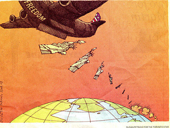 | | Global distrust of American leadership is reflected in increasing disapproval of the cornerstones of US foreign policy, the survey says. | Growing numbers of people worldwide view environmental problems, pollution, infectious diseases, nuclear proliferation and the widening gap between rich and poor as the most menacing threats facing the planet, according to a 47-nation survey published yesterday by the US-based Pew Global Attitudes Project.