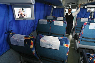 The diamond service includes an attendant who comes by every half-hour or so with soda, water or coffee. The buses feature large, clean bathrooms and sometimes even separate men's and women's bathrooms.
