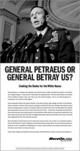 Moveon.org confirmed it paid $65,000 for the full page ad headlined "General Petraeus or General Betray Us."