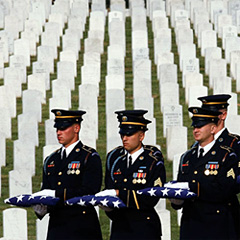 | | Members of an honor guard, assigned to a group burial, hold six American flags at Arlington National Cemetery in Virginia. Army Pfc. David Neil Simmons, Stagg Sgt. Harrison Brown and Pfc. Todd Singleton were killed in an explosion in Iraq in April. Their remains were unidentifiable, leading to the group burial. (Win McNamee/Getty Images) | Washington - A political group supporting President Bush's Iraq war strategy with a multimillion-dollar ad campaign is airing a new TV ad denouncing a liberal group's sharp criticism of Gen. David Petraeus.