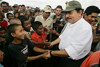 | | Nicaragua's President Daniel Ortega greets residents in the Miskito Indian village of Sahasa, off Nicaragua's Caribbean Coast, Friday, Sept. 7, 2007, after Category-5 Hurricane Felix passed hit the area. (AP/Miguel Alvarez) | More than six months have passed since the inauguration of the new "21st Century Sandinista" government of Nicaragua last January. Jubilant celebrations of that event expressed the excitement of hundreds of thousands of Sandinista supporters. New hopes for an escape from the hell of neoliberal catastrophes breezed across our country's mountains, volcanoes, valleys, and lakes, from the large cities to the remote hinterlands and coasts.