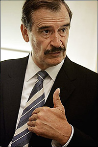 | | Vincente Fox, the former President of Mexico, is interviewed in New York Monday Oct. 8, 2007. Former Mexican President Vicente Fox said Monday that the United States is letting racism dictate its policies, especially when it comes to immigration. (AP/Richard Drew) | New York - Former Mexican President Vicente Fox said Monday that the United States is letting racism dictate its policies, especially when it comes to immigration.