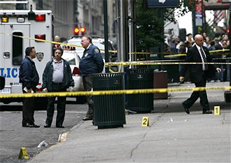 Police had cordoned off the area outside the building on the East Side of midtown Manhattan and the bomb squad was scouring the scene for evidence.