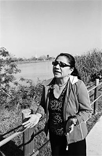 | | Martha Sanchez of La Unión del Pueblo Entero stands at the Rio Grande River in Mission, Texas that separates the United States from Mexico. (Joseph Rodriguez/New America Media) | | | The heated debate about securing the border does not account for the fact that for many people in places like South Texas the border is almost irrelevant.
