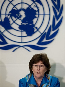 | | Louise Arbour, United Nations High Commissioner for Human Rights, of Canada, speaks during a press conference in Mexico City, Friday, Feb. 8, 2008. Arbour, the UN's top human rights commissioner, said that water boarding qualifies as torture, and that Mexico must treat Central American migrants to this country with the same respect it demands for Mexicans living in the U.S. (AP/Eduardo Verdugo) | | | Mexico City - The United Nations' top human rights official said Friday that waterboarding — a tactic used by the U.S. in its battle against terror — qualifies as torture.