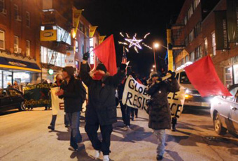 At about 6 p.m. yesterday, 40 to 50 demonstrators carrying red and black flags marched loudly down JFK St. They banged on plastic drums and chanted slogans, including “Zapata vive, la lucha sigue”—“long live the Zapata movement, the struggle continues.”
