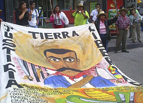 | | International Women´s Day marchers target NAFTA and free trade on the streets of San Cristóbal, Chiapas. | | | San Cristóbal de las Casas, Chiapas - On March 8th, International Women’s Day, commemorates the day 15,000 women marched through New York City to demand a shorter work day, the right to vote and better pay in 1908. Last Saturday, one hundred years later, Women’s Day was brought to the streets of San Cristóbal de Las Casas, Chiapas, Mexico in the form of an anti-free trade march with the participation of various unions and organizations ranging from Section 50 of the National Women’s Health Workers Union, to political prisoner freedom advocate groups, to independent peasants, house wives, workers and students.