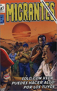 In Issue No. 1 of Migrantes, a group of Mexicans is robbed by two Mexican police officers, abandoned by a smuggler and attacked by bandits on the Arizona-Mexico border. All the migrants turn back except one, who is seen dying in the desert on the last page.
