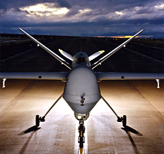 | | A Customs and Border Protection Predator B UAV sits on the runway. (Ofer Wolberger) | | | Sierra Vista, Ariz. - The pilot has gone through his checklist and taxied his plane into position for takeoff.