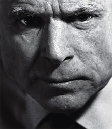John McCain is an American hero in an age of war and terrorism. As young Americans return in bodybags from Iraq and Iranian mullahs cook up uranium, an old soldier like McCain seems a natural choice in a dangerous world. He is the son and grandson of warriors. Both his father and grandfather were four-star admirals. He was even born on a military base, on 29 August 1936, in Panama. And his life story reads like a movie script. The young, rascally McCain, nicknamed 'McNasty' by his classmates, attended the elite West Point military academy. He became a navy pilot, long before Tom Cruise made 'Top Guns' famous, and began his first combat duty in Vietnam in 1966, carrying out countless missions. Then came disaster. He was shot down and held prisoner for five years by brutal North Vietnamese captors. In his stiff gait and damaged arms, he still bears the scars of their tortures. His CV for the White House is written in his suffering as much as in his career as a senator.