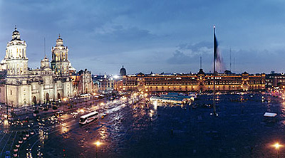 | | Zócalo: The piazza is one of Latin America's great urban vistas. (Getty) | | | From the long bedroom windows of Mexico City’s Gran Hotel, you can watch the sun rise over the far side of the Zócalo. The piazza is one of Latin America’s great urban vistas: the ornate colonial facades of ecclesiastical and government palaces, the enormous Mexican flag flapping in the breeze and the vast central plaza itself, slowly turning fiery orange and coming to life.