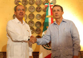 Cartagena de Indias, Colombia - Colombian President Álvaro Uribe hailed the Mexican government's stategy in the fight against drug trafficking. "And we wish to congratulate the Mexican Government and President Calderón on his brave fight against this scourge.