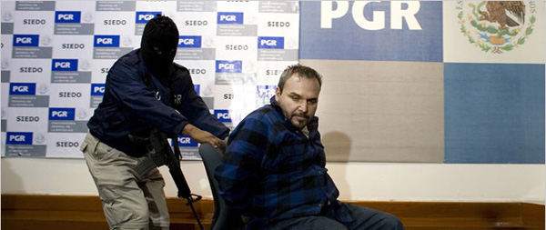 | | Mexican authorities on Wednesday touted the arrest of a trafficker, Jesús Zambada García. Cartel leaders have sought to kill law enforcement officials engaged in Mexico’s antidrug campaign. (Alexandre Meneghini/Associated Press) | | | Mexico City — The Bush administration signaled its alarm about Mexico’s vicious drug war by sending the American secretary of state on Wednesday to a two-day meeting on improving cross-border cooperation in the battle against the country’s powerful drug cartels.