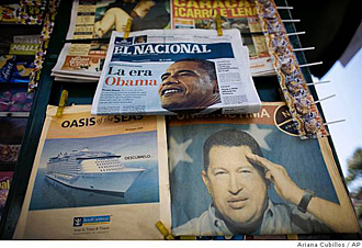 | | A Caracas newsstand displays a newspaper with a photo of Barack Obama alongside one of Venezuelan President Hugo Chavez. (Ariana Cubillos/AP) |  | Bogota, Colombia - Under President Barack Obama, Latin Americans can expect Washington to shift resources from military to social programs and show more willingness to talk to such hostile governments as Cuba, Venezuela and Bolivia. At the same time, the fundamentals of U.S. foreign policy will hold steady, most analysts predict.