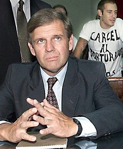 | | Alfredo Astiz is pictured during a court appearance in Buenos Aires in 2002. Argentine legal authorities suspended a decision to release Astiz, known as the "Blond Angel of Death" for a series of murders during the 1976-1983 military dictatorship, a day after a court ordered him freed, the official news agency Telam reported Friday. (AFP/Daniel Garcia) |  | Buenos Aires - An Argentine court order to release on bail nearly 20 officers accused of committing human rights abuses during the 1976-1983 dictatorship shows the slow-moving justice system’s limitations in dealing with cases against those prosecuted for crimes against humanity, say activists.